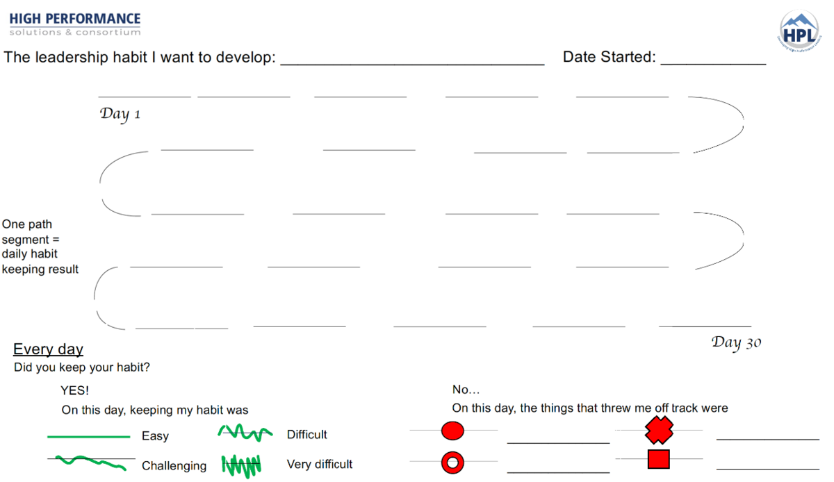 To participate in the challenge, choose an example you want to set for your team that will demonstrate the principle. Define the specific habit that you need to create for yourself. Use the calendar to help you develop the habit