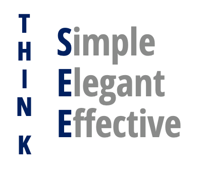 As you do this, I would encourage you to follow the logic I use for future state design – THINK TO S.E.E – Simple, Elegant and Effective.