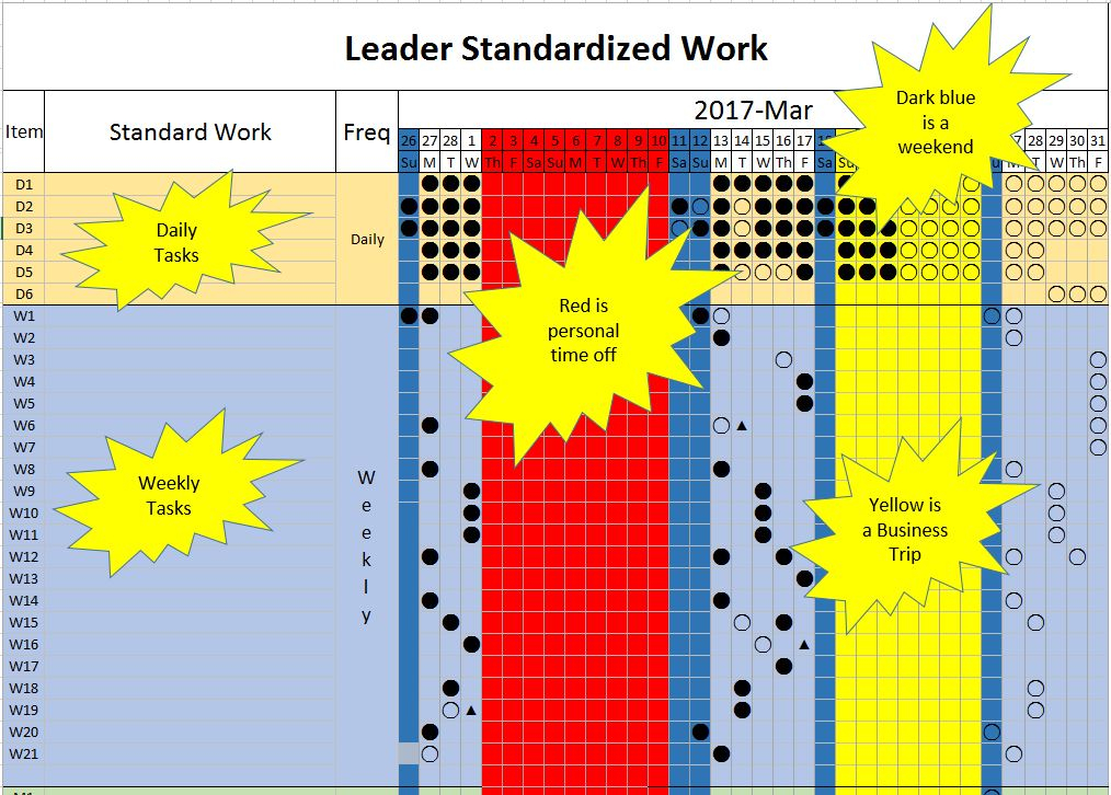Note: Toyota KV fonts are required for the correct symbols used in the leader standard work template.