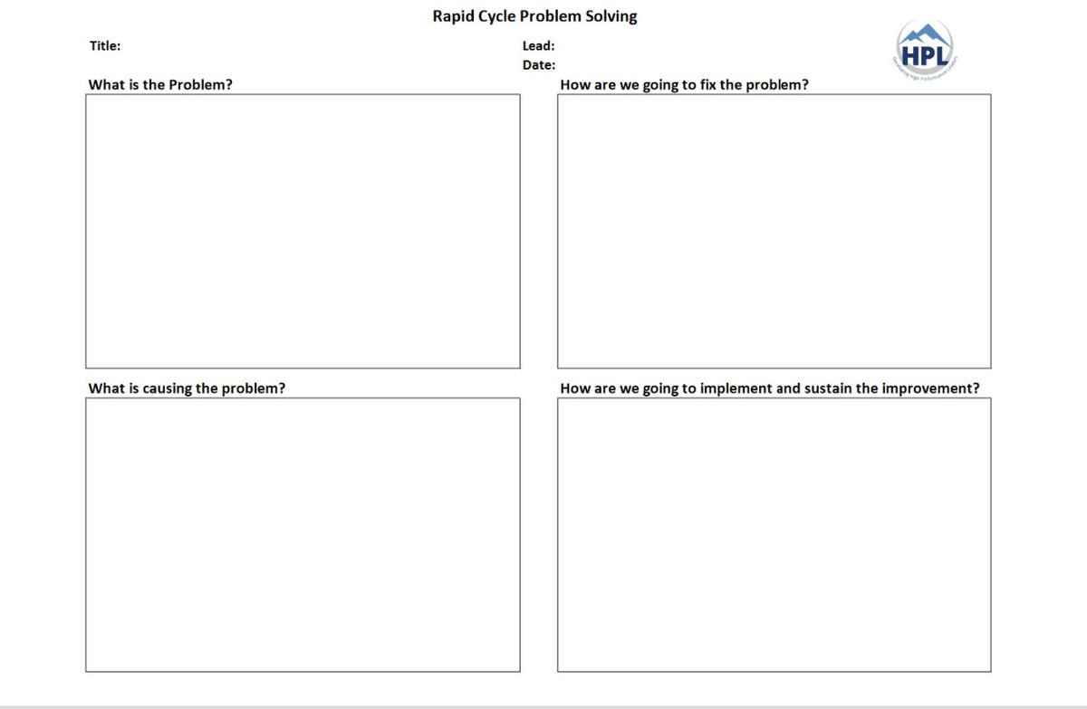 There are no shortages of problems to be solved! This 4 step approach to problem solving provides a framework and methodology to drive to root cause, develop effective countermeasures and ensure sustainment over the long term, without the complication of an 8 step A3. There is a time and place for an A3 for sure, but the Rapid Cycle Problem Solving approach is very effective for anyone to solve day to day basic problems.